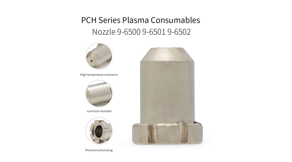 Der PCH-35 Plasmadüse ist mehr als eine einfache Öffnung; Es handelt sich um ein präzisionsgefertigtes Gerät für Wärmemanagement und Gasdynamik. Entwickelt für die hohe Stromstärke des PCH-35-Brenners (normalerweise 100 A+) besteht seine Hauptaufgabe darin, das überhitzte Plasmagas zu verengen und zu fokussieren, sodass ein kohärenter, energiereicher Strom entsteht, der dicke Materialien sauber durchtrennen kann. Gleichzeitig formt es den Strom des sekundären Schutzgases, das für den Schutz der Schnittfläche vor Oxidation und dem Wegblasen von geschmolzenem Metall von entscheidender Bedeutung ist. In einem System ist diese Leistung minderwertig oder abgenutzt PCH-35 Plasmadüse kann zu katastrophalen Ausfällen wie Doppellichtbögen, starken Abschrägungswinkeln, unkontrolliertem Abfall und schneller Zerstörung der gepaarten Elektrode führen. Die Verfügbarkeit spezialisierter Modelle –9-6501Anwesend 9-6500, Und 9-6502– Ermöglicht dem Bediener die Feinabstimmung der Leistung für bestimmte Materialstärken und die gewünschte Schnittqualität bei Hochleistungsanwendungen.