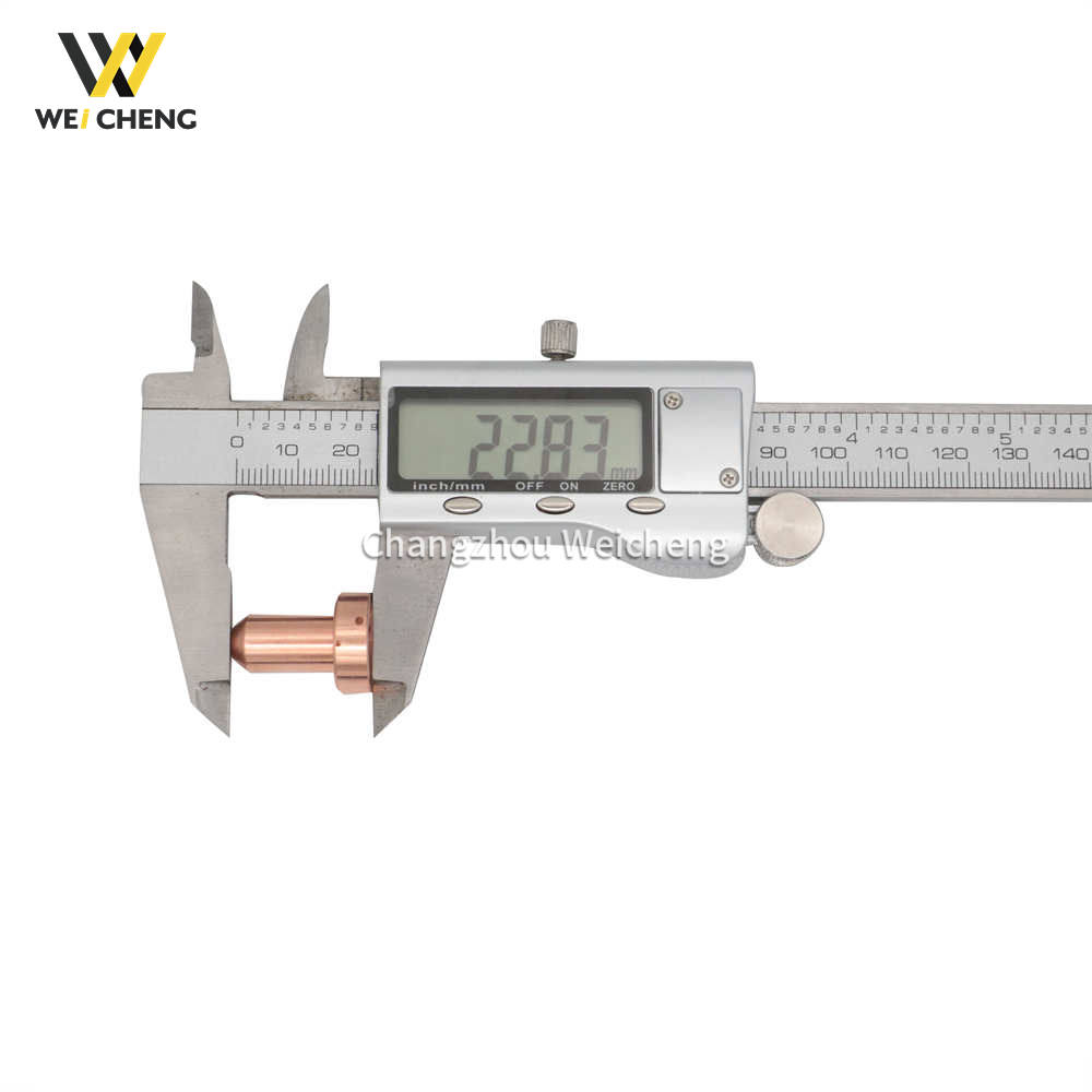 Konische Öffnungsgeometrie: Fokussiert den Plasmalichtbogen für saubere, schmale Schnittfugenbreiten (±0,3 mm Toleranz) auf Materialien bis zu 40 mm dick, einschließlich Edelstahl und Aluminium.