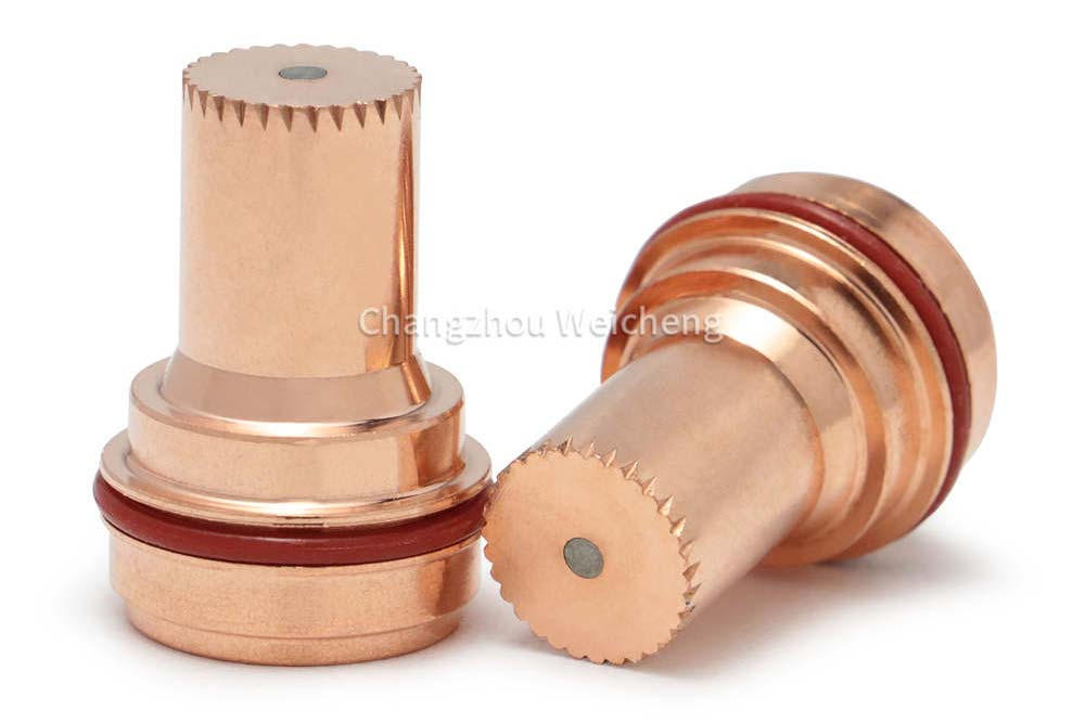 Końcówka emitera hafnu: Precyzyjnie obrobiona wkładka hafnowa zapewnia stabilny zapłon łuku i trwałość, nawet w warunkach bardzo wysokiego natężenia prądu (100–250A).