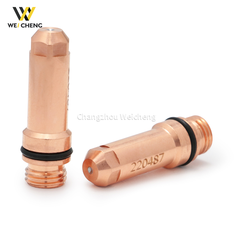 The elektroda plazmowa 220487 zwiększa wydajność cięcia, zapewniając stałą stabilność łuku i wysoką jakość cięć w różnych zastosowaniach.
