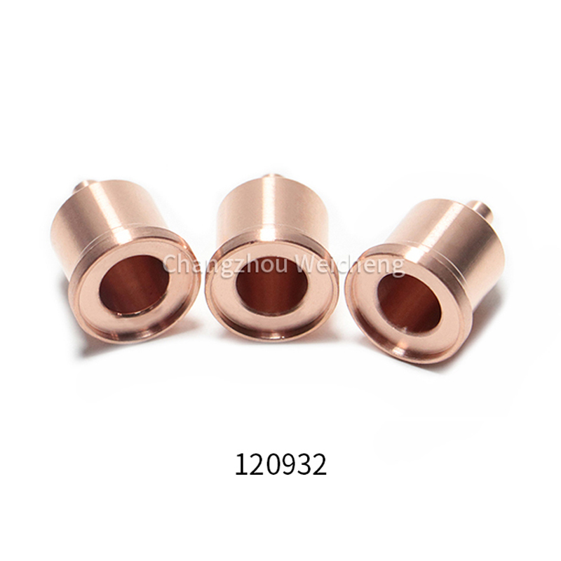 Proprietary Silver Plating: A key differentiator of the genuine 120932 nozzle is its silver plating. Silver provides superior surface conductivity for the pilot arc and dramatically increases resistance to oxidation and corrosion. This prevents the buildup of scale that can disrupt gas flow and arc stability, a common failure point in plain copper nozzles.